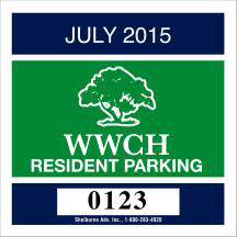 SQUARE PARKING PERMIT DECAL – color is (ultra blue imprint on yellow vinyl). Permit Size (trim size 3″ X 3″). All PARKING DECALS, PARKING STICKERS AND STATIC CLING DECAL DESIGNS ARE INTERCHANGEABLE FREE STAFF HANG TAG PERMITS – with purchase of parking permits. See details below. FREE PARKING PERMIT ART – with standard logos or mascots, or we can…